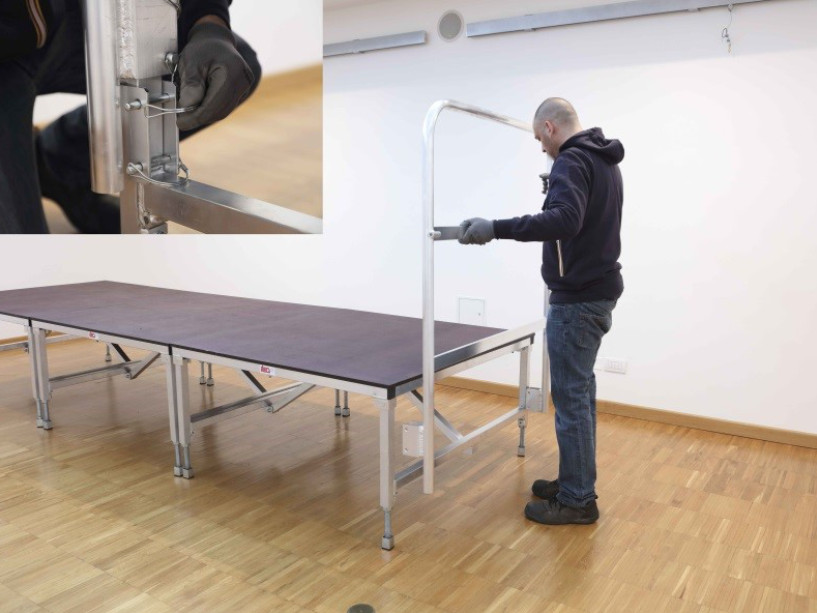 Abbiamo infatti progettato e realizzato una struttura in alluminio per consentire allestimenti di pedane e palchi in tempi rapidissimi. Accostando singoli moduli preassemblati e piani di calpestio in CARPLY è possibile creare un palco modulare su misura, sicuro e resistente, secondo le tue necessità.